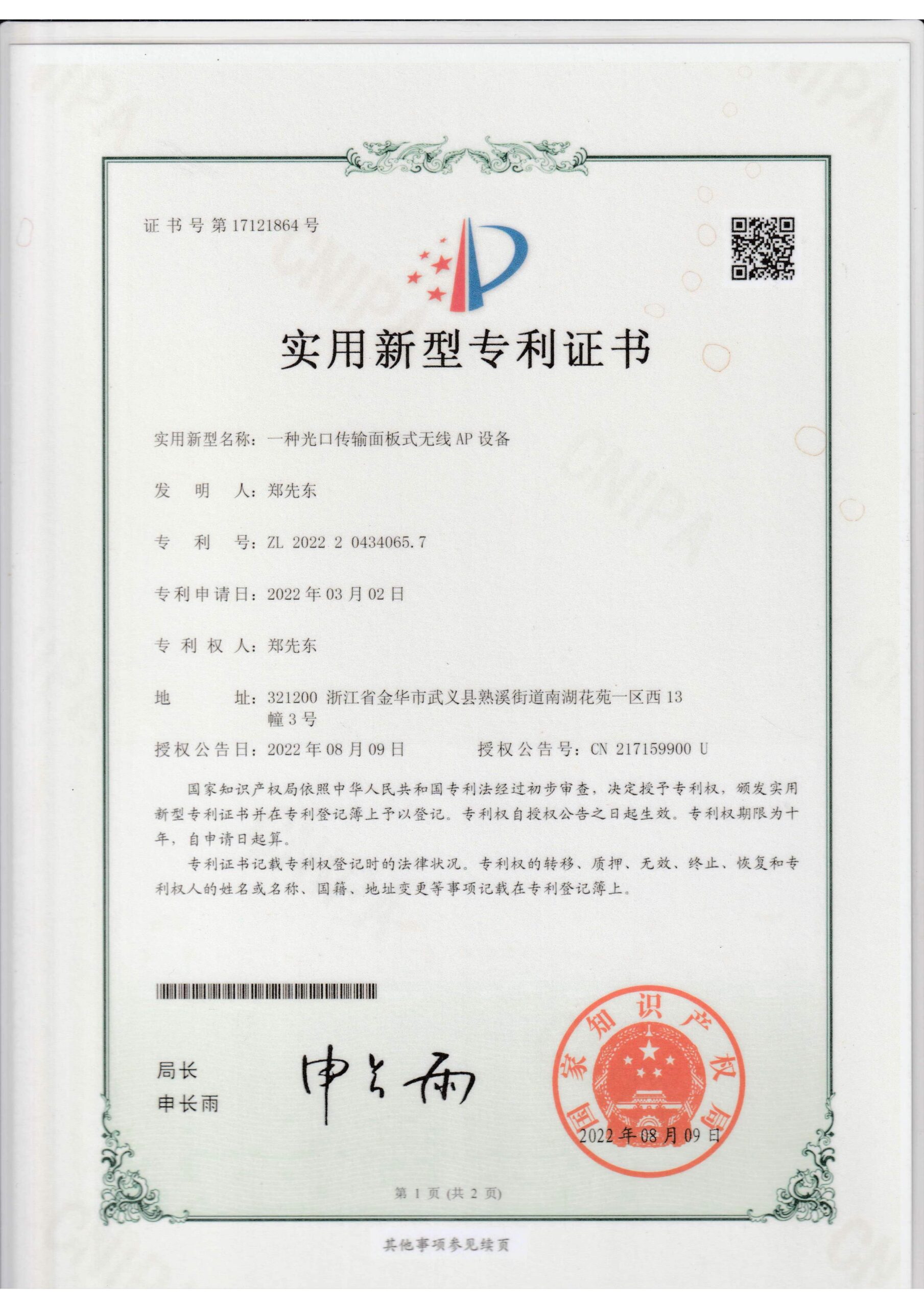 The company specializes in producing essential devices for building local area networks in all-optical networks via Ethernet, including Fiber to the Desktop (FTTD), Fiber to the Room (FTTR), and Fiber to the Terminal (FTTT). Specifically, it designs and manufactures practical and aesthetically pleasing fiber optic socket transceivers (switches, commonly known as optical sockets) with one optical port and multiple electrical ports, which are tailored for 86-type back boxes, as well as optical wireless panel (ceiling-mounted) APs. It also produces all-optical port routers and high-performance all-optical port switches.